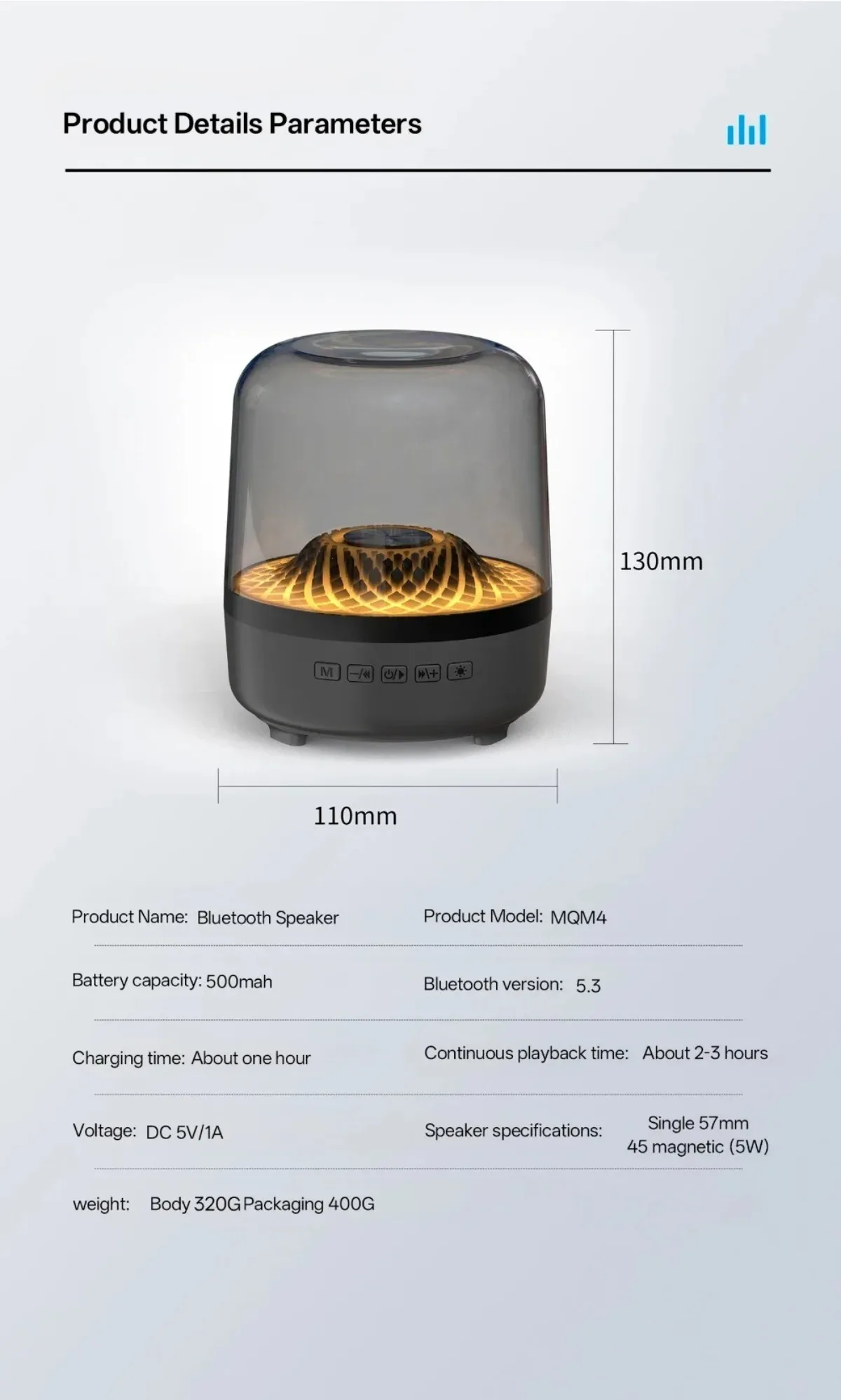 【Compact and Portable】110mm * 110mm * 130mm small size, It is very suitable for use on the desktop. It is also convenient to carry.
